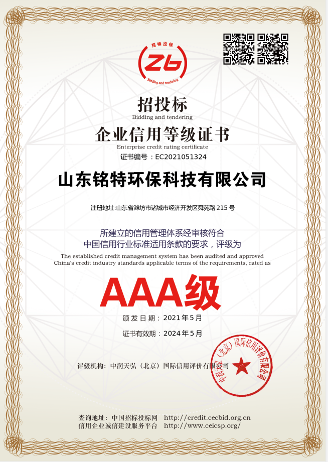 山東銘特環??萍加邢薰臼侵鳡I污水處理設備的生產廠家,公司成立于2012年,通過引進美國技術成立的一家集技術研發、產品生產、設計施工于一體的生產型企業。公司坐落山東諸城,東臨海濱名城青島市,南毗新興港口日照,區位優越,交通便捷,基礎設備齊全。公司注冊資金1200萬元,擁有固定資產1000余萬元,現有員工80余人,其中大專以上學歷或具有中級以上職稱的專業技術人員10余人。 我公司常年與山東輕工學院及國內多家院所合作,擁有較強的非標設計、制造和服務能力,公司具有環保工程設計及環保設備生產資質,可為用戶提供技術咨詢、工藝設計、場區平面布置、設備安裝和調試等一條龍服務。